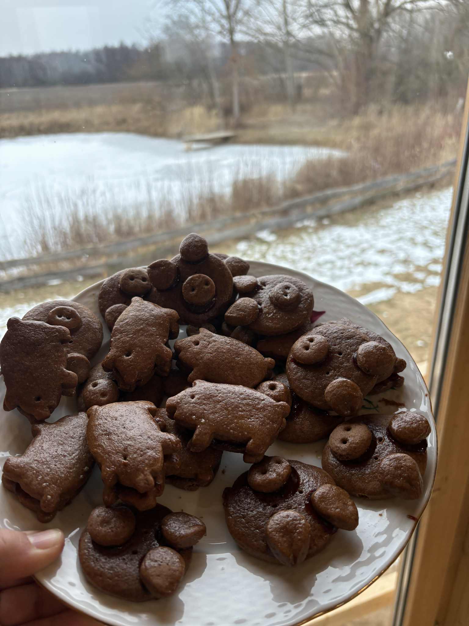 polí, sadu starých odrůd ovocných stromů, přírodní zahrady a řeky Cidliny a Labe.